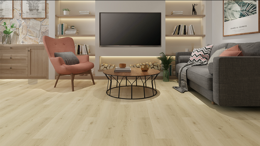 - 業界最高0.55mm耐磨層,耐磨轉數達15,000轉,與一般超耐磨木地板同等級
